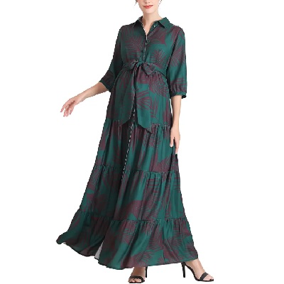 This elegant maxi dress works for both pregnancy and nursing, thanks to a button front.
