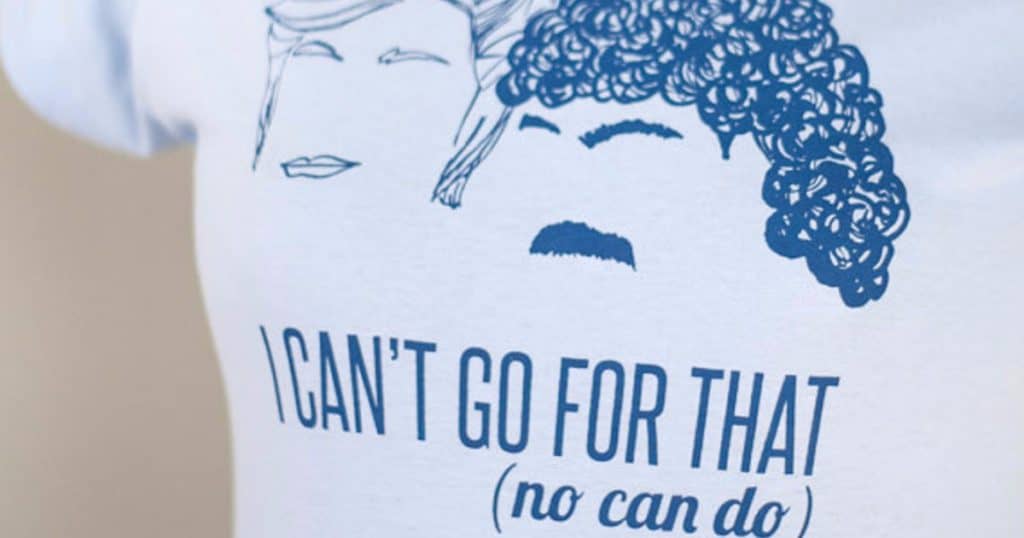 (Pictured: Hall & Oates women’s tshirt (I Can’t Go for That- No Can Do), available at Etsy through Exit343design’s shop.) (Affiliate link.)